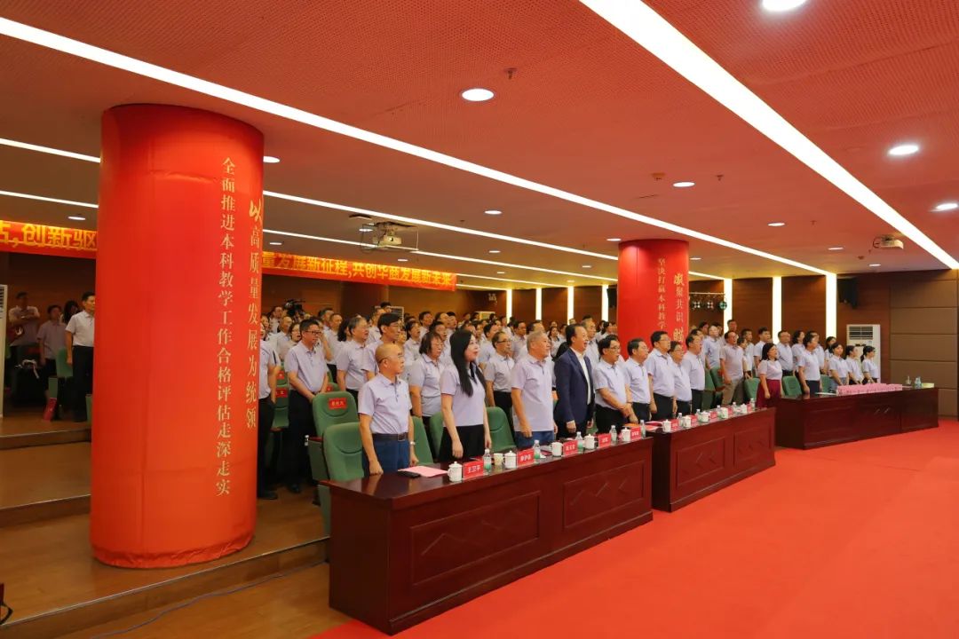 本科教学工作合格评估是对学校办学方向定位、教育教学成果、人才培养质量的真实检验,是当前我校面临的一次大考,是关乎学校长远发展、各项事业高质量发展的一件大事。自迎二十周年校庆 迎本科合格评估工作启动以来,学校上下团结一致、组织严密,凝聚智慧、彰显特色,纵深推进、全面覆盖,取得了阶段性成效。下一步,我校将以此次责任落实大会为契机,结合学校实际不断细化标准,进一步深化教学改革,集中力量补短板、强弱项、亮特色、显优势,切实达到“以评促建、以评促改、以评促管、评建结合、重在建设”的目的,以“功成不必在我,功成必定有我”的精神和担当围绕中心、服务大局,全面推进迎二十周年校庆 迎本科合格评估工作,聚焦、聚神、聚力,以更加饱满的热情、更加务实的行动确保各项任务落到实处,以优异的成绩迎接建校二十周年,以充足的信心迎接本科教学工作合格评估!