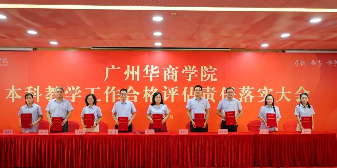 为进一步细化合格评估的标准和要求,有序推进我校本科教学工作合格评估,落实大会上,廖榕就董事长与全体校领导、党委书记陈玉欢与各二级学院及职能部门负责人分别签署本科教学工作合格评估责任书。全体教职员工表示将以满腔的热情和高度的责任心投身到迎评促建工作中,以最佳状态、最优成绩打赢本科教学工作合格评估攻坚战。